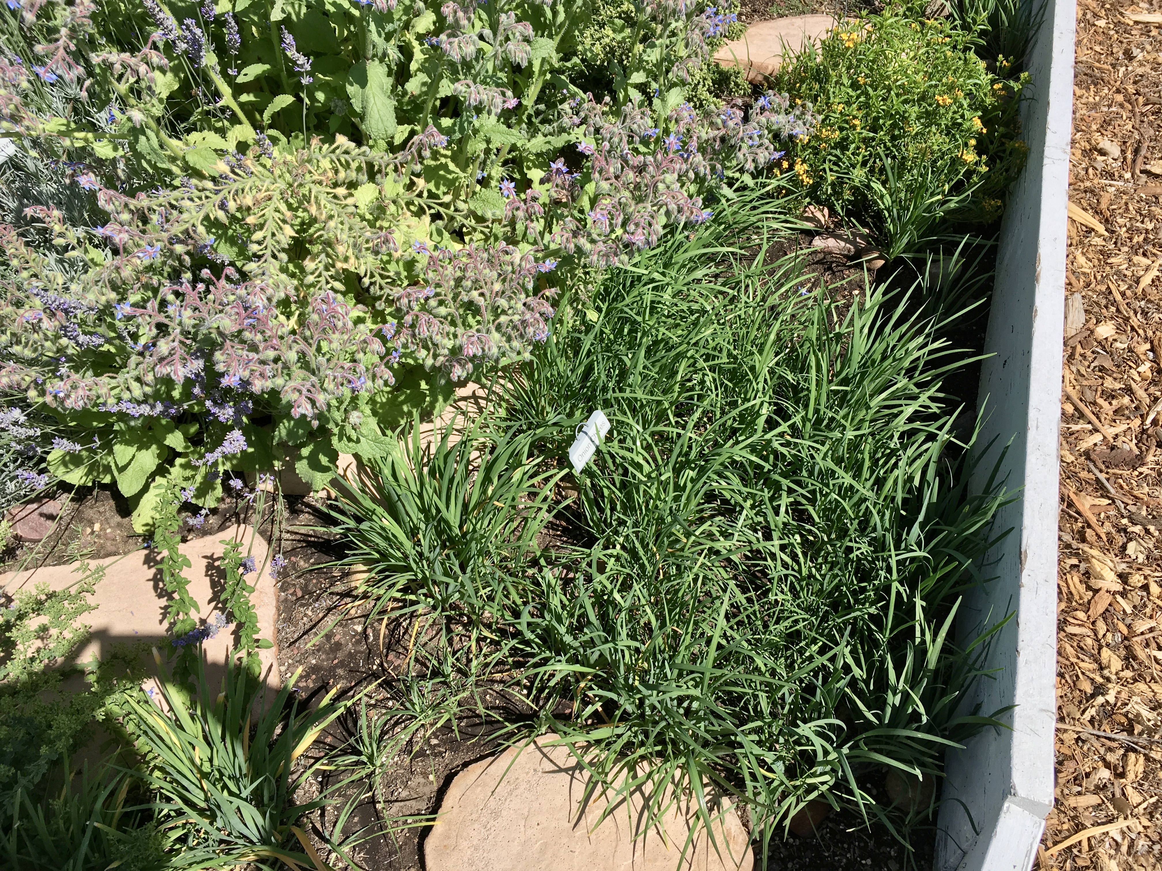 Harvest the leaves by trimming off the top one third and leave the plant to continue to grow. When the small globe shaped lavender flowers appear, pick them before the seeds appear as they are yummy in salads. Chives can be minced and used fresh to top potato, cauliflower, asparagus, or tomato dishes. Add chives at the last minute for best flavor.