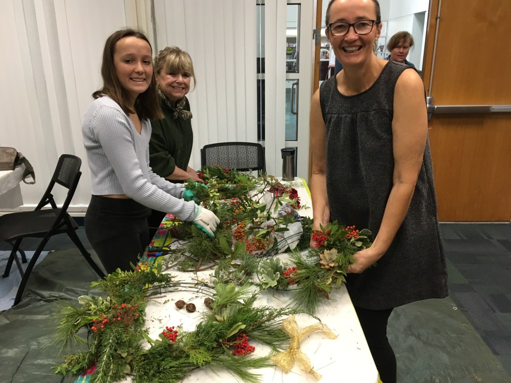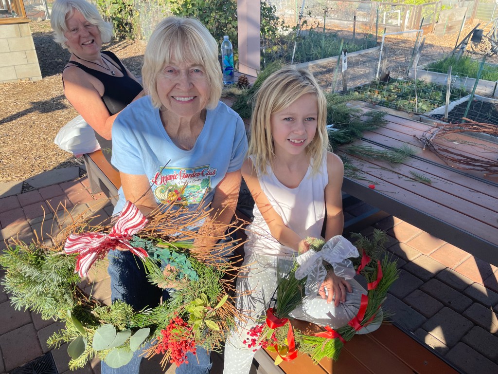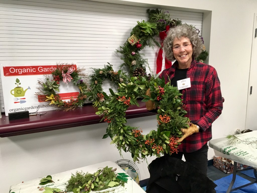 The Organic Garden Club has a Wreath Making Workshop every year. We provide wire wreath forms and floral wire. Members bring greenery, berries, moss, ribbons, and decorations to share. Some members have grapevines and straw that are made into a circle with twine to create a wreath form. If you don’t live nearby check your local craft store, where you can find various sizes of wire wreath forms and floral wire. Invite your friends over for an couple of hours of holiday spirit!