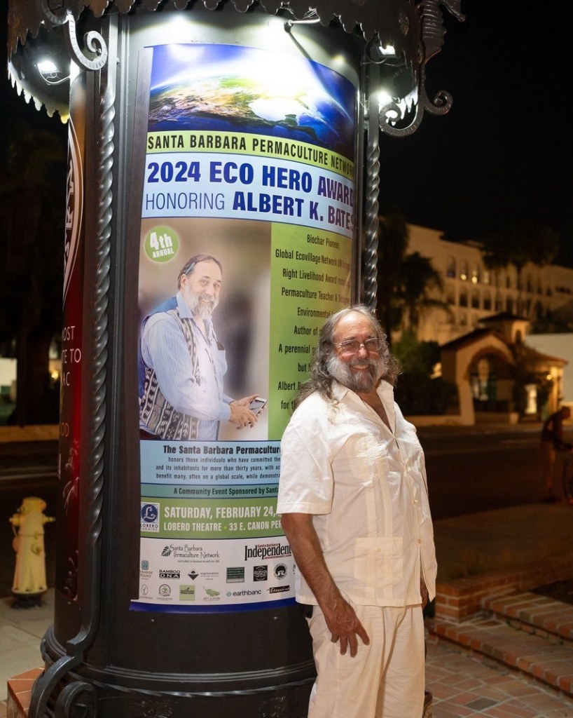 Albert Bates, a recent Santa Barbara Permaculture Eco Hero, is the founder of the Global Eco Village Network, an ongoing delegate to the United Nations Climate Conferences, lawyer, and author of more than 20 books. He left his law practice and started an Eco Village, The Farm, in Tennessee, in 1972, where he started a Mushroom Farm. He took up a law case and worked with his young congressman, Al Gore, and discovered the challenges of climate change. He taught permaculture in China and Brazil and learned from the indigenous rainforest tribes.