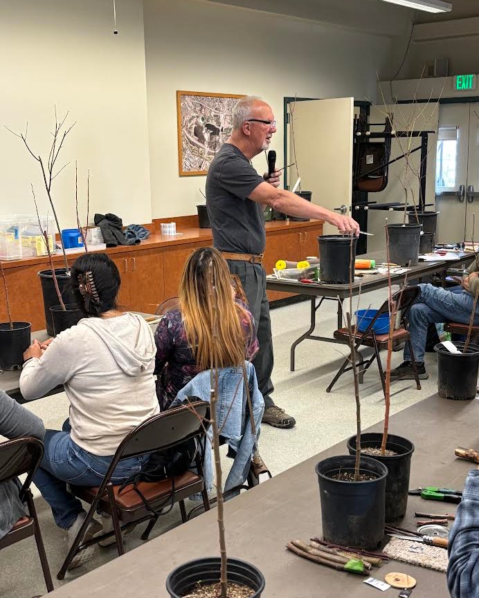 Past President of Organic Gardening Club of Ventura County, Bill Brandt, led apple grafting workshops at five high schools in early March. He went to Ventura High School, Santa Paula High School, Fillmore High School, and Camarillo High School in Ventura County, and Carpinteria High School in Santa Barbara county.