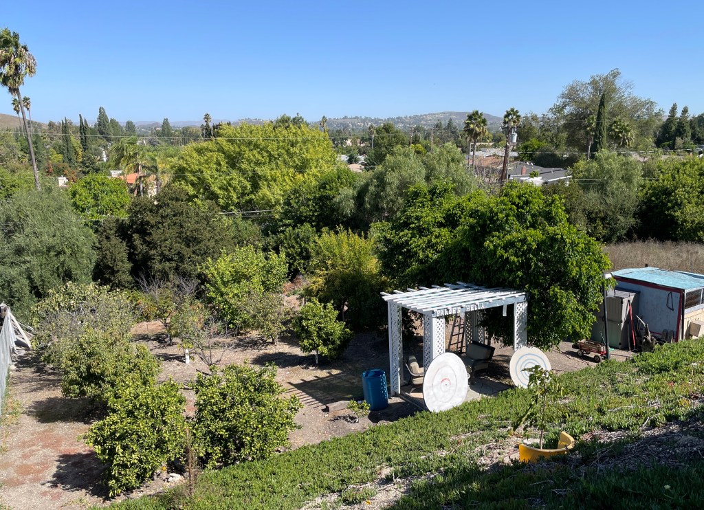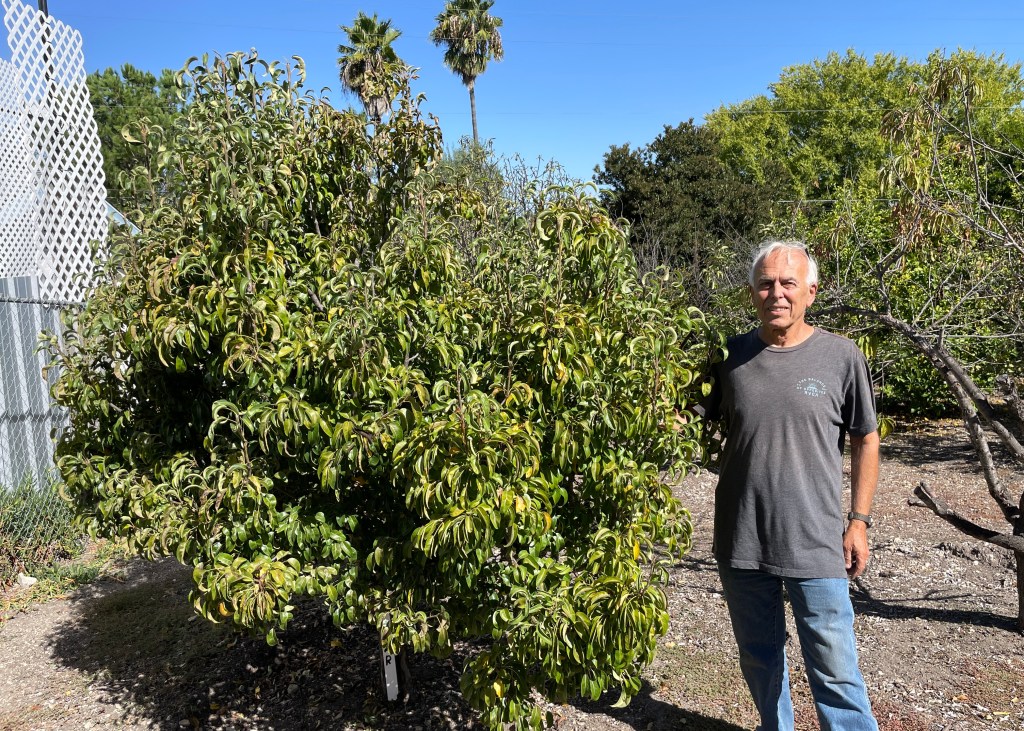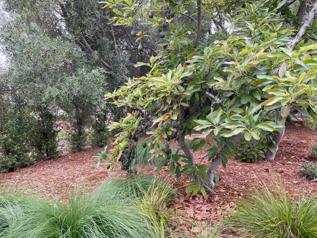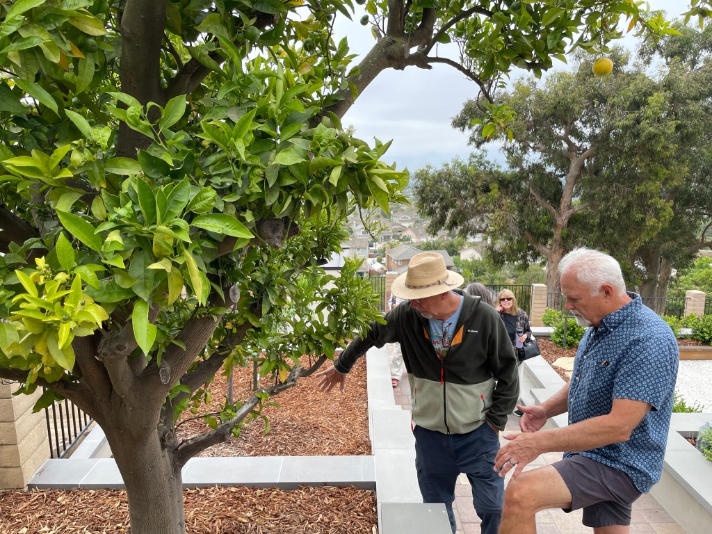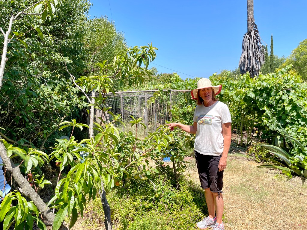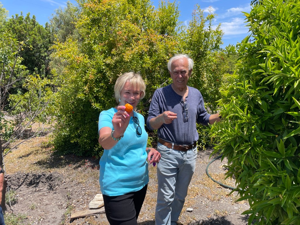 Their home is surrounded with fruit trees: avocados, figs, apple, orange, peaches, plus blueberry bushes. Bill Brandt gave them pointers on several of them.