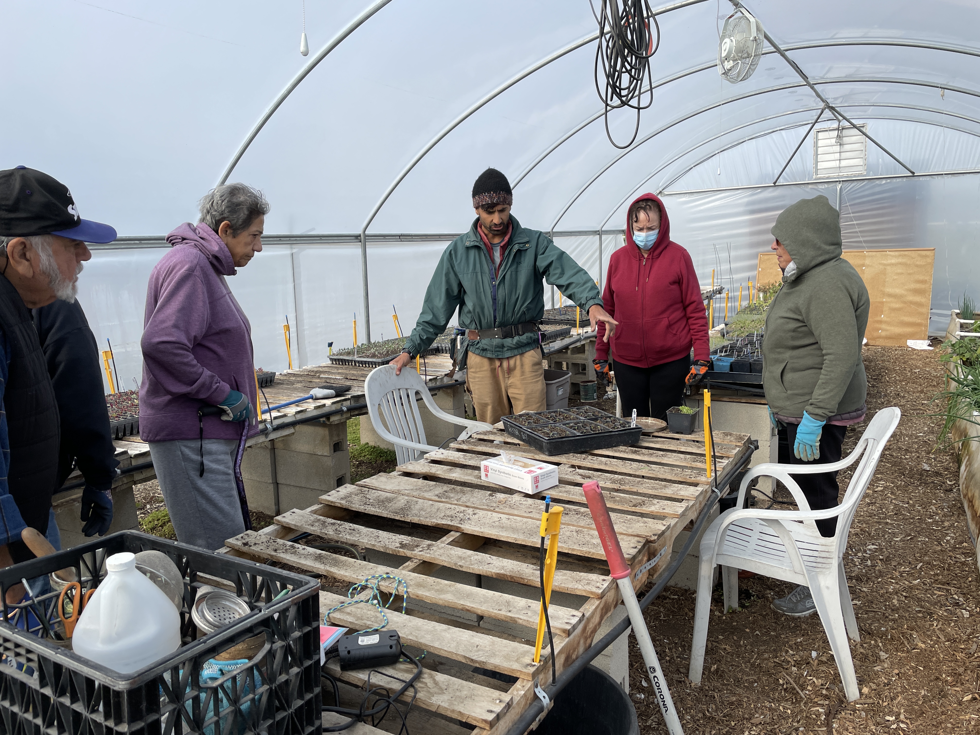 Organic Garden Club members enjoyed transplanting veggies in the new greenhouse at the Ventura County Senior Nutrition Garden that grows organic produce for the Senior Meals Program and local food banks. Christopher Fiorello, manager at this lovely 2 acre garden in Oxnard, also showed Organic Garden Club members how to prune Dragonfruit that surrounds this wonderful organic food garden and chicken coop and which weeds to pull in the pollinator native plant area. Several Organic Garden Club members arranged to come back for more volunteer gardening as they found gardening there so peaceful and restorative.